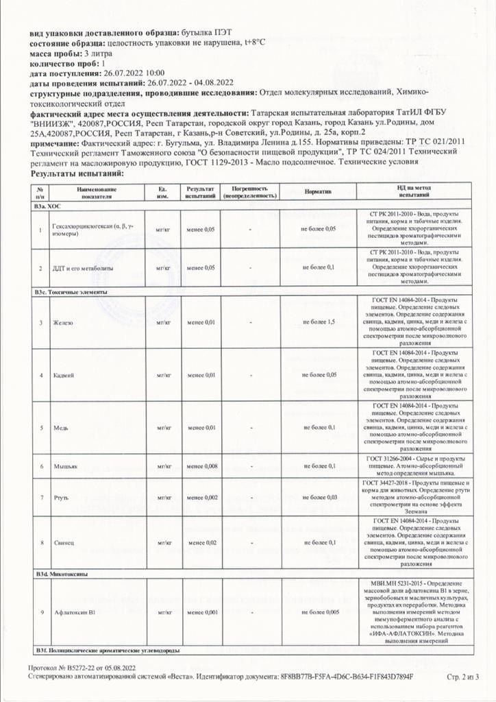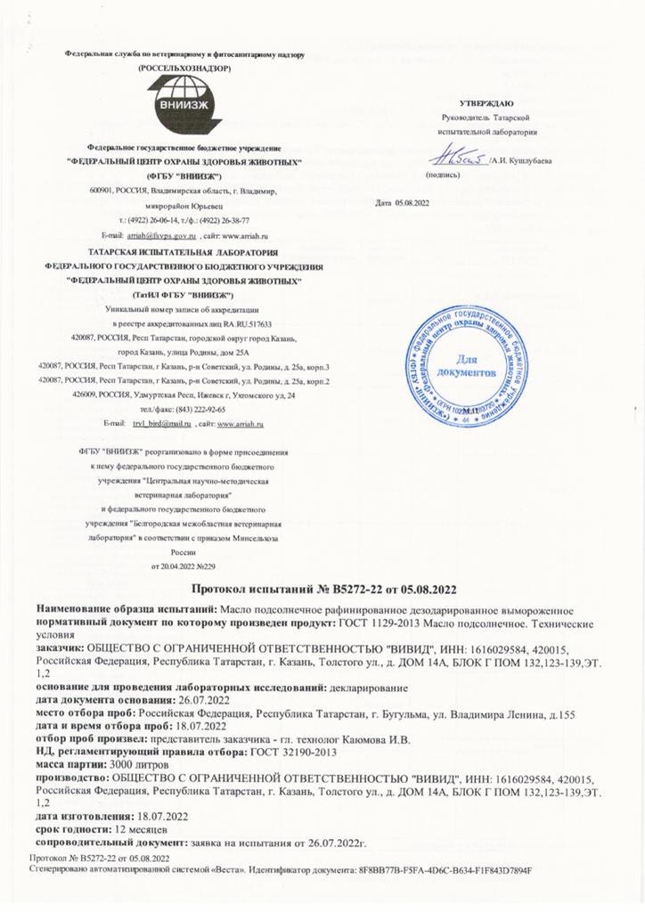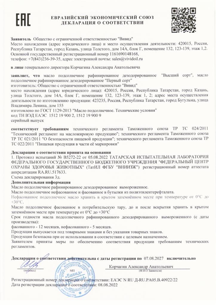 Масло подсолнечное рафинированное высшего сорта 5 л (ПЭТ), количество 15000 шт. |