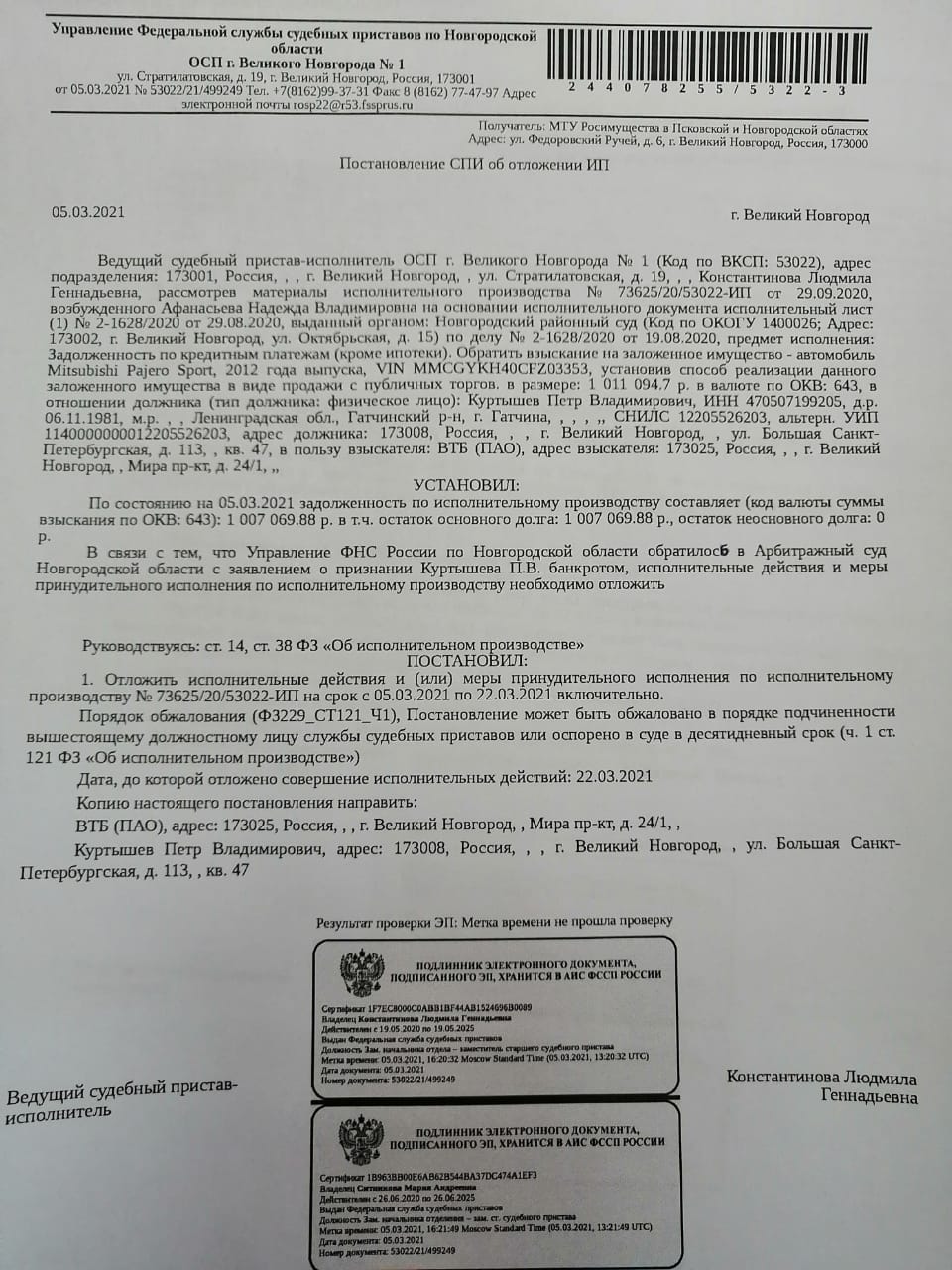 Автомобиль Mitsubishi Pajero Sport, 2012г.в., М134ЕЕ78, MMCGYKH40CFZ0335, должник Куртышев П.В., взыскатель ВТБ, судебный пристав Губарева О.Р., начальная цена 431 300,00 руб., шаг аукциона 4 313 руб., сумма задатка 215 650 руб.